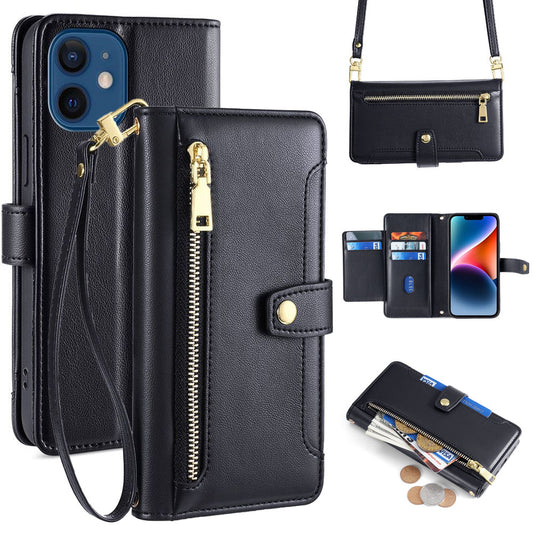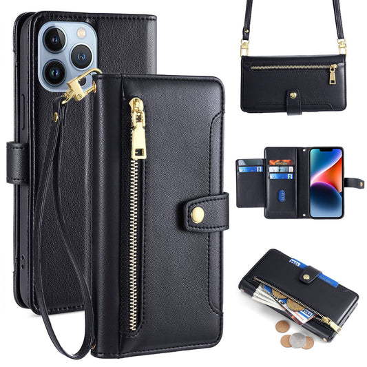 New Cross Body Zipper Wallet Leather Phone Case for iPhone