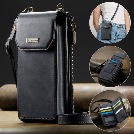New RFID Blocking Zipper Wallet Leather Phone Case with Lanyard for Women