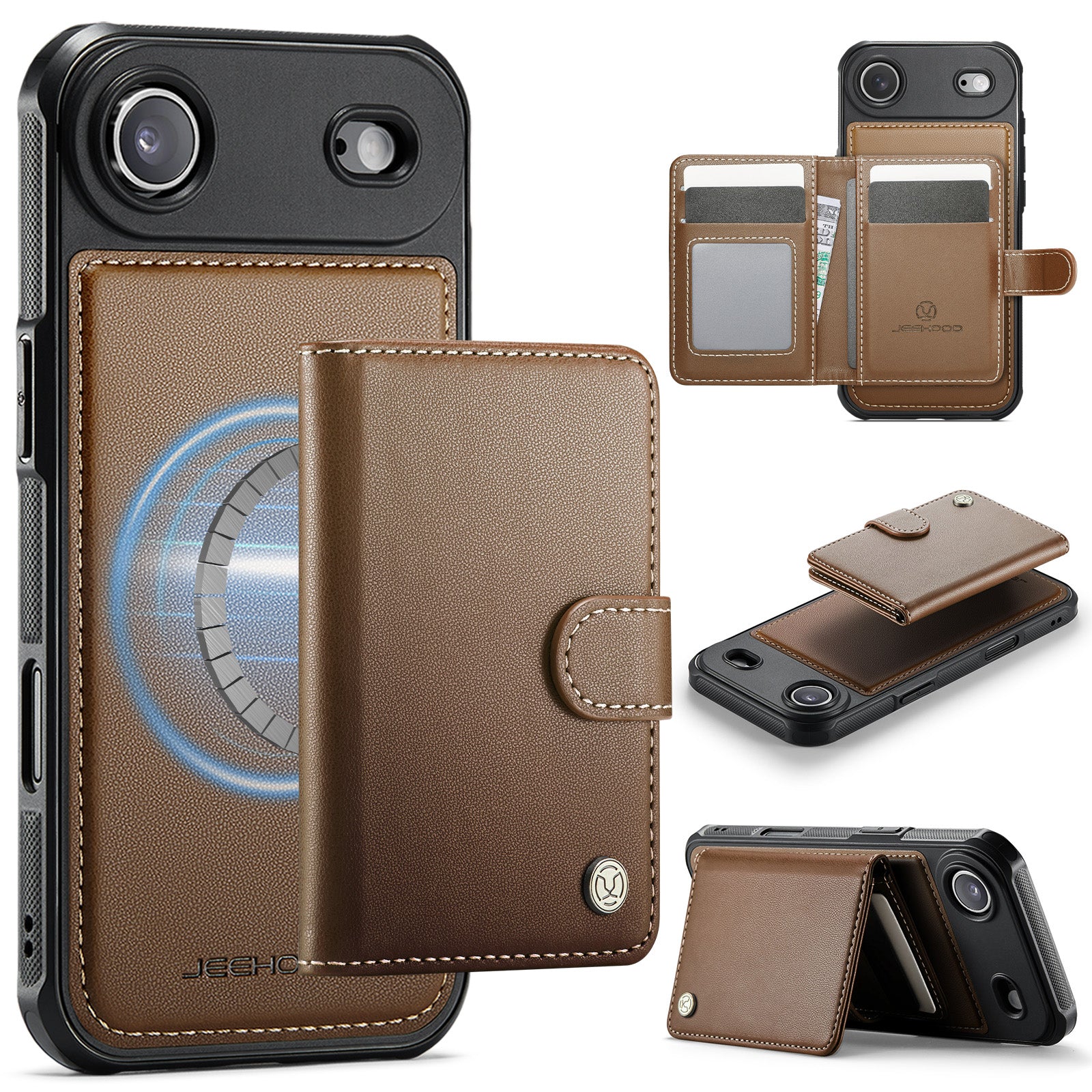 New 2-IN-1 RFID Blocking Card Holder Leather Phone Case for iPhone Air/17/17 Pro/17 Pro Max