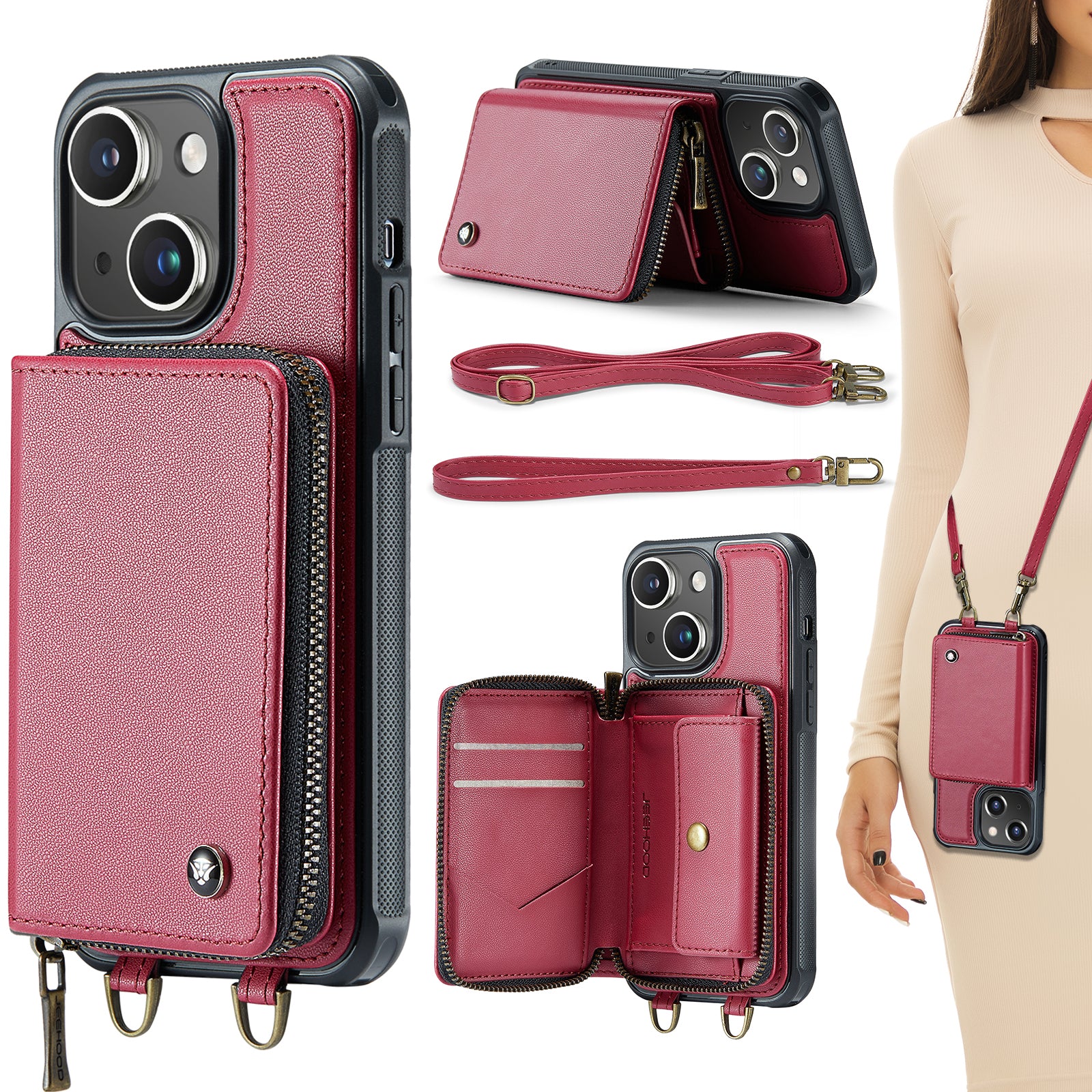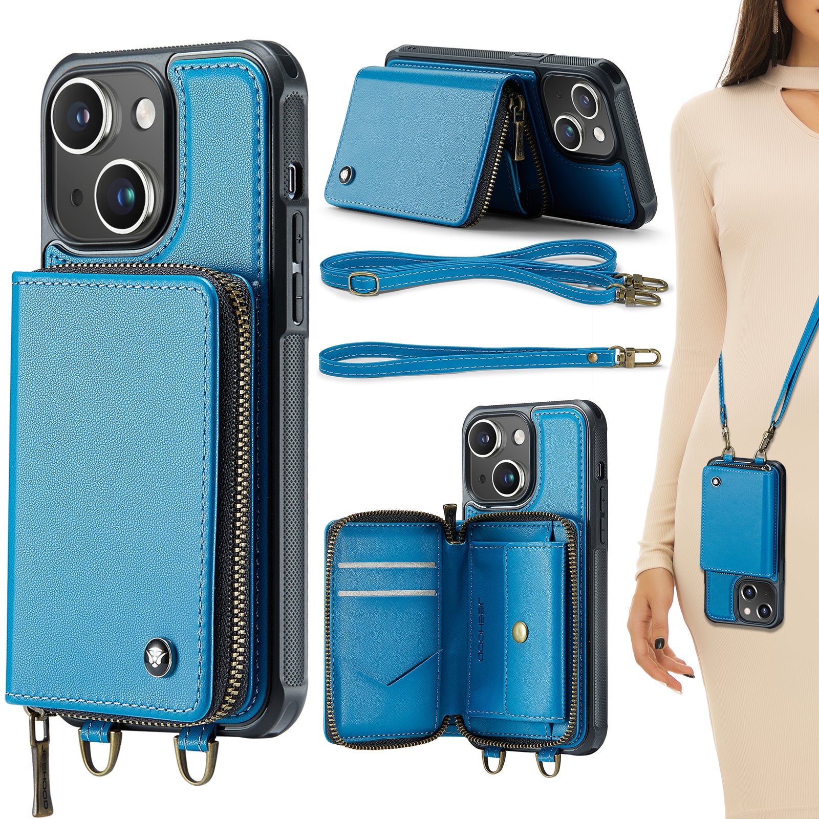 New RFID Blocking Crossbody Zipper Wallet Leather Phone Case for iPhone